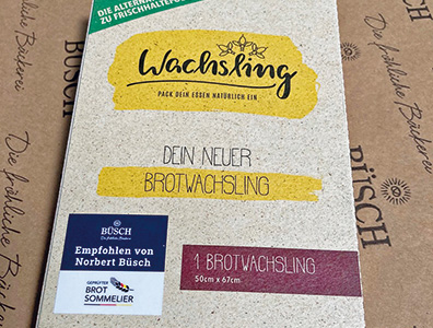 Die perfekte Ergänzung zur Brotlagerung im Bunbag ist unser Büsch-Wachsling. Ein extra großes Bienenwachstuch (64,5 x 47 cm), in das Sie Ihr angeschnittenes Brot einwickeln können. Das antibakterielle Tuch ist bis zu einem Jahr verwendbar und spart den Einsatz von Polybeuteln.