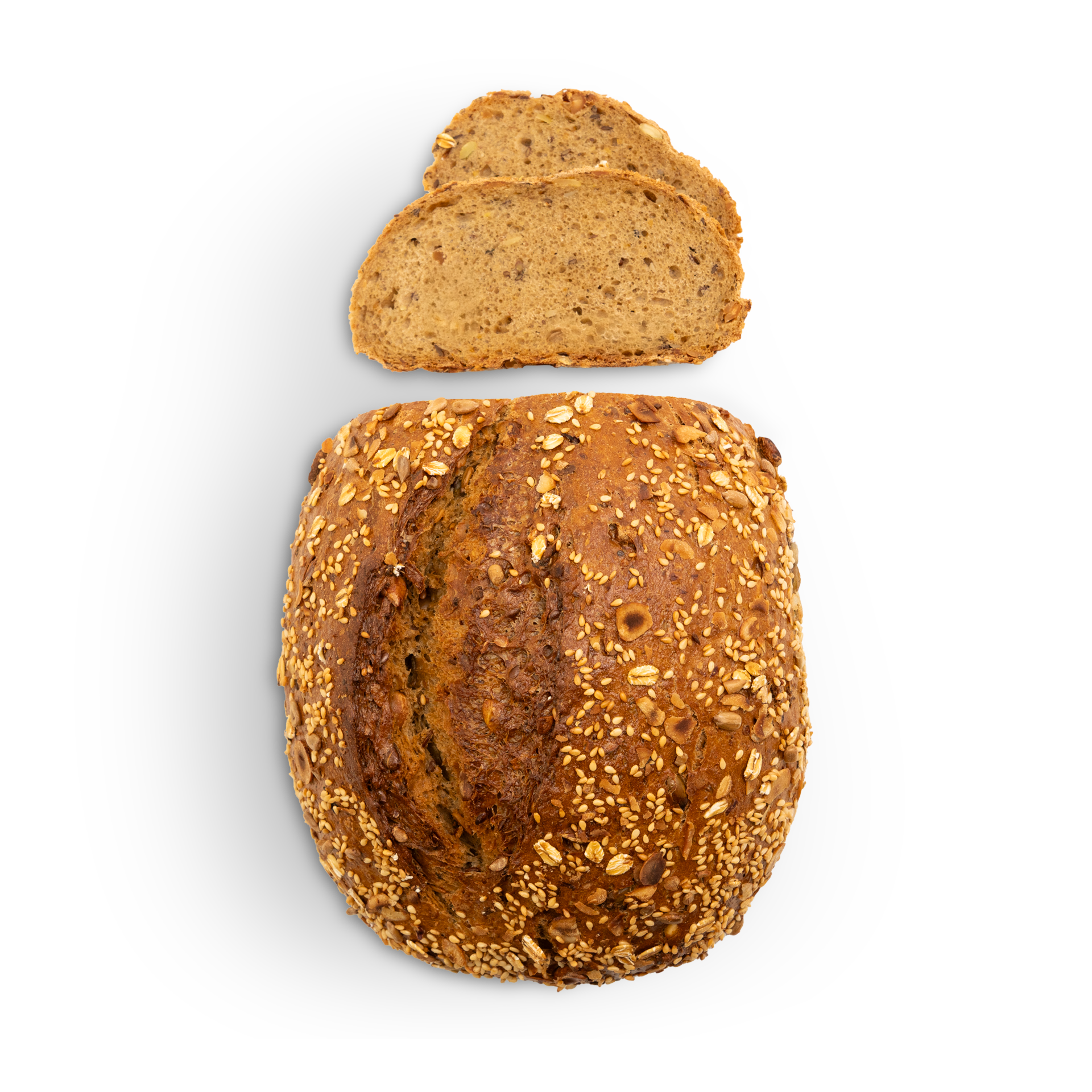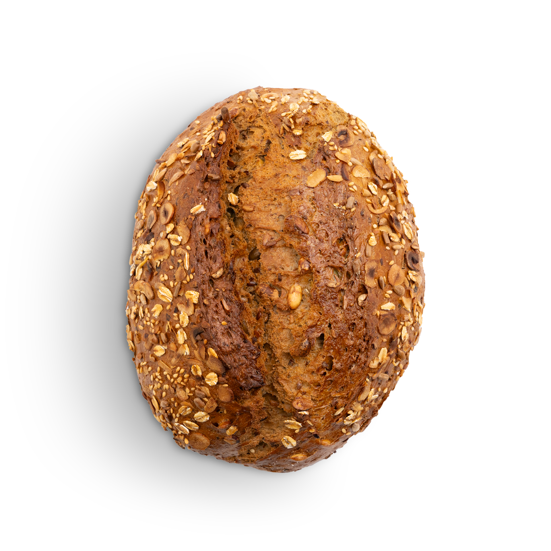 WEIZENmehl, Wasser, Sauerteig (ROGGENmehl, Wasser, ROGGENkleie), Kürbiskerne, ERDNÜSSE, Sonnenblumenkerne, HAFERflocken, ROGGENvollkornschrot, Leinsamen, SOJAschrot, ROGGENmehl, Speisesalz, Zucker, Hefe, SESAM, HASELNÜSSE, GERSTENmalzmehl, GERSTENröstmalzmehl, GERSTENmalz.