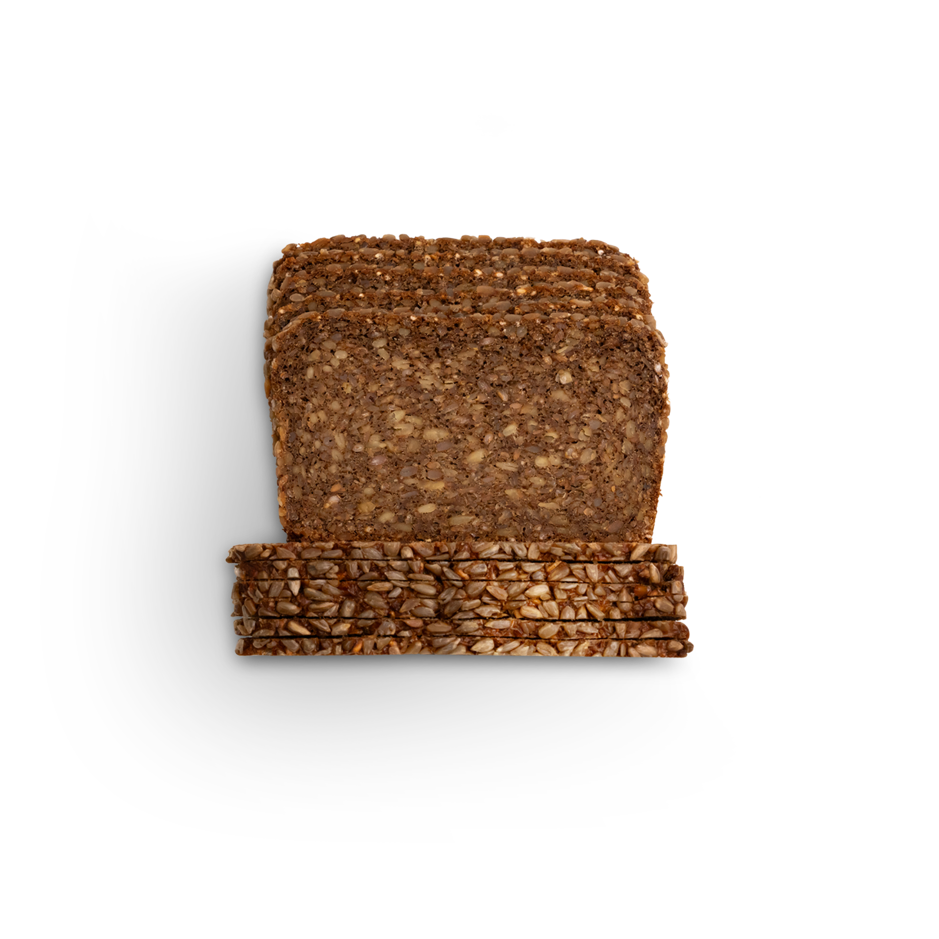 ROGGENvollkornschrot, Wasser, Sonnenblumenkerne 12%, ROGGENkörner, Sauerteig (ROGGENmehl, Wasser, ROGGENkleie), Zuckerrübenkraut, Speisesalz, Hefe, ROGGENmehl, GERSTENmalzmehl, GERSTENröstmalzmehl, GERSTENmalz.